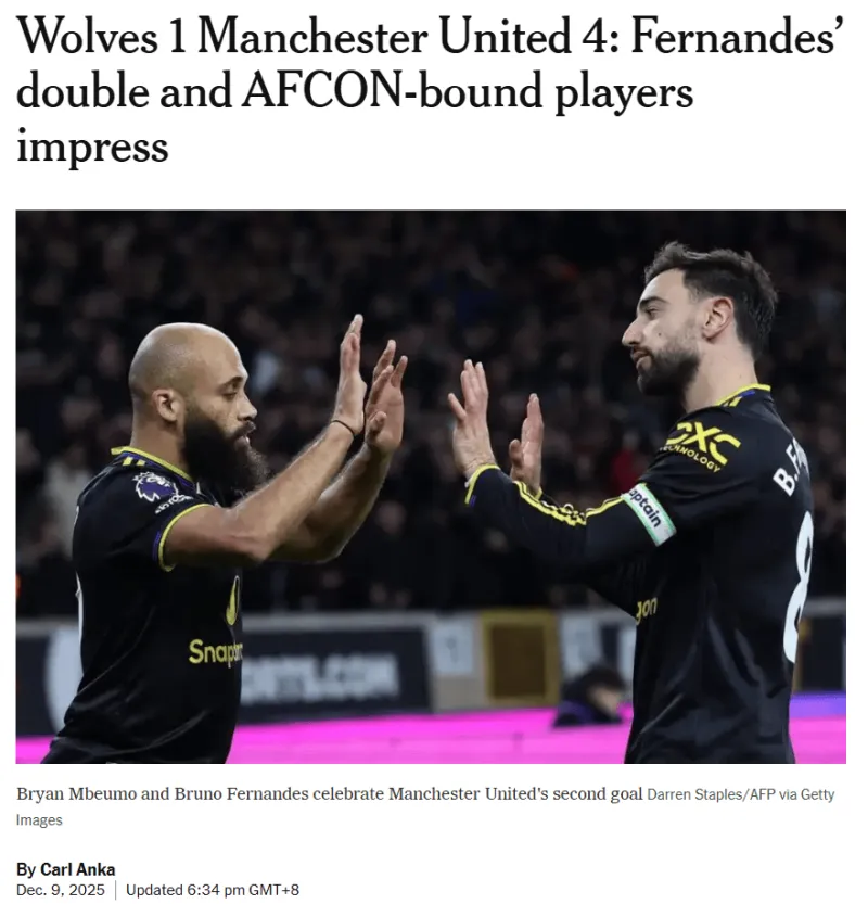 憑借這場勝利,曼聯(lián)在英超聯(lián)賽中攀升至第六位,而未嘗勝績的狼隊則確定將以積分榜墊底的身份度過圣誕。