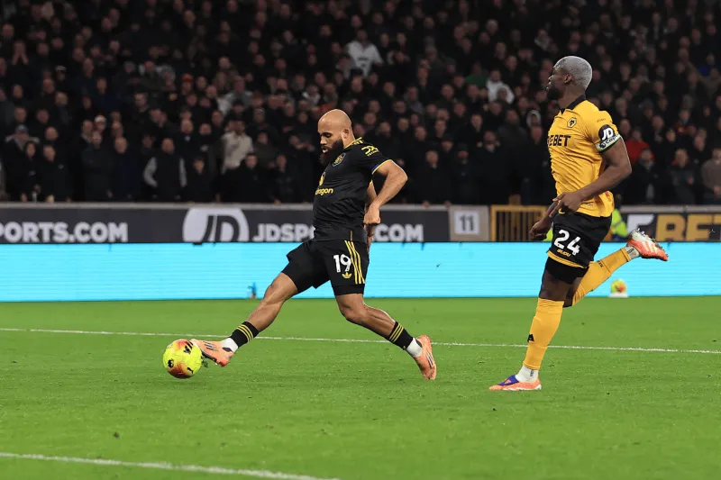 這粒進球源自一次快速反擊:盧克?肖在防守三區(qū)從貝萊加德腳下斷球后,B費、庫尼亞與達洛特完成快速傳切配合,最終讓姆伯莫得以在狼隊禁區(qū)內(nèi)的空檔處得球,并完成致命一擊。