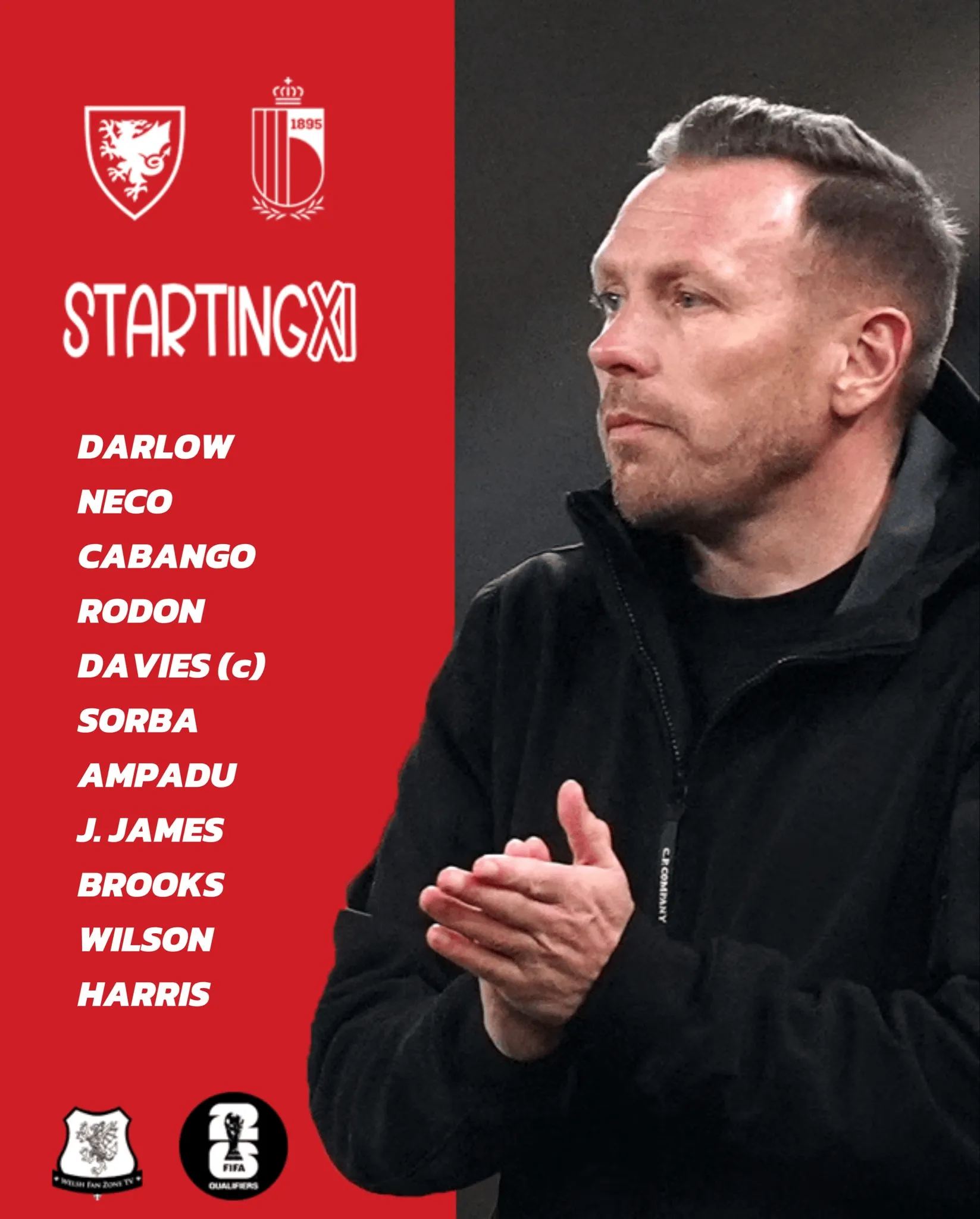 來源:X虎撲10月14日訊 世歐預(yù)小組賽J組第8輪,威爾士對陣比利時的比賽即將開球,賽前,雙方公布了本場比賽首發(fā)名單。