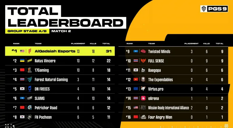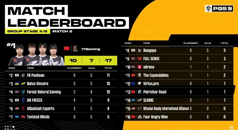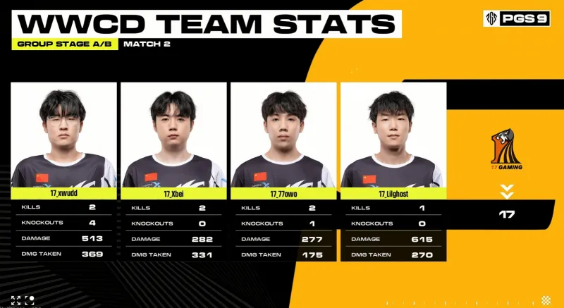 [賽后]PGS9小組賽D1R2:17吃雞,單局7淘汰