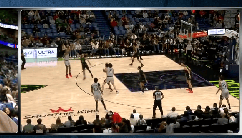 NBA常規(guī)賽,馬刺客場對陣鵜鶘的領先比賽正在進行中。