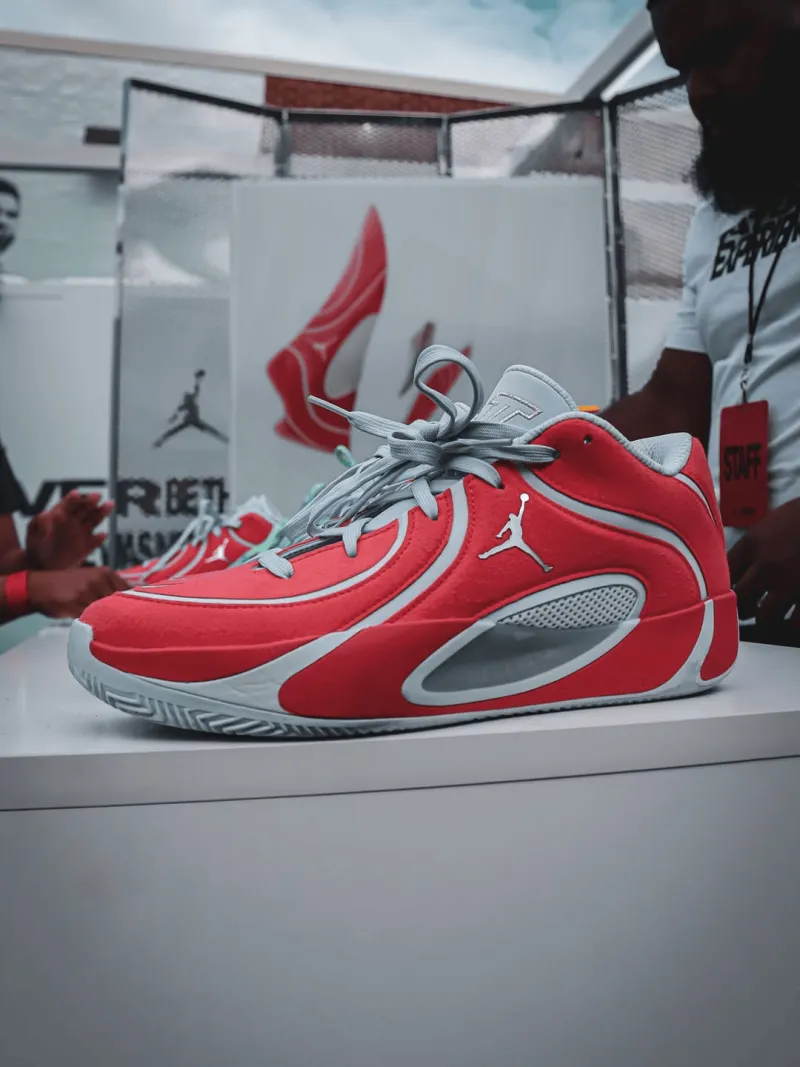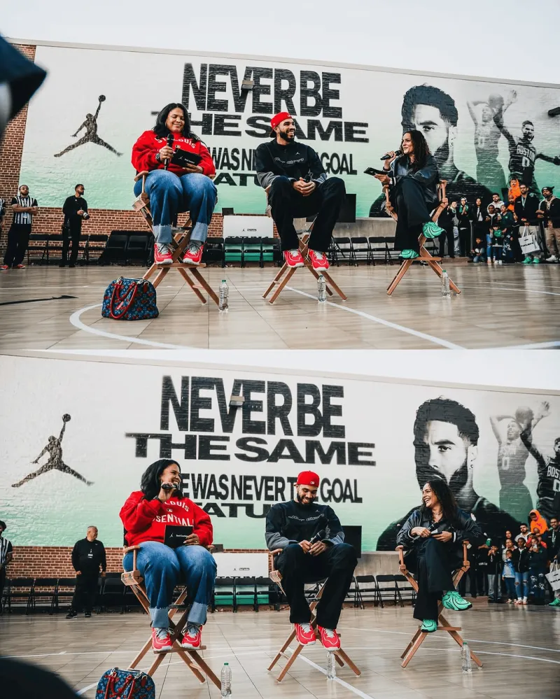 虎撲10月13日訊 今日,Jordan Brand聯(lián)合Foot Locker舉辦Jordan Tatum4球鞋體驗(yàn)會(huì),板J辦杰森-塔圖姆及其母親到場(chǎng)助陣。合F會(huì)塔