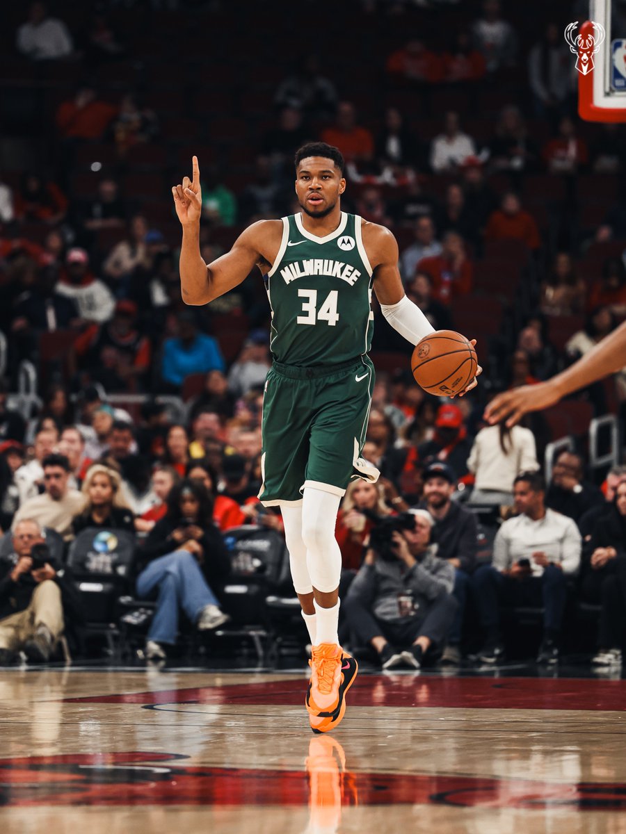 虎撲10月13日訊 今日,雄鹿社媒分享?yè)P(yáng)尼斯-阿德托昆博的板雄賽場(chǎng)個(gè)人照片,并配文: