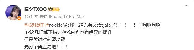 虎撲10月14日訊 [-] rookie猛c球已經(jīng)完美交給gala了!!!!!!啊啊啊啊