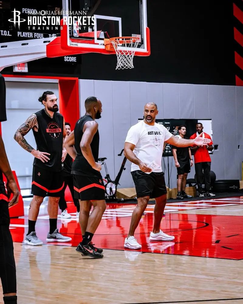 “教練在第二天訓(xùn)練中帶來(lái)能量并定下基調(diào) ??!烏度”火箭官方附文道。卡執(zhí)