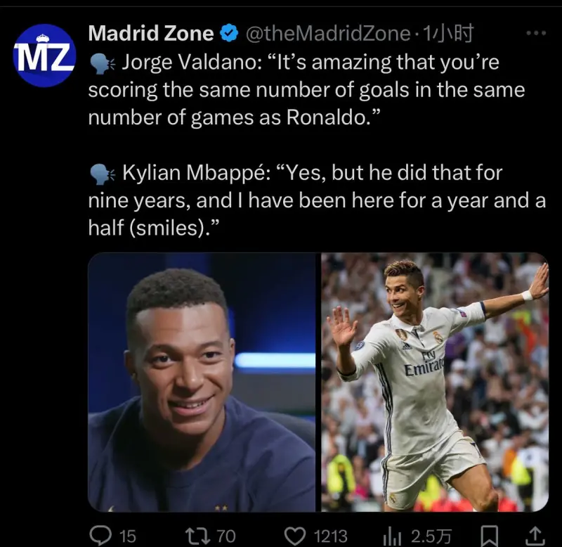 基利安·姆巴佩:“是安姆啊,可他是巴佩半笑連續(xù)九年都做到這種數(shù)據(jù),而我才在這里踢了一年半(笑)。羅連續(xù)”