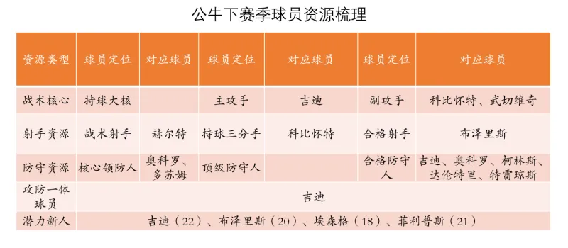 防守端公牛的資源同樣匱乏,外線領(lǐng)防角色可用奧科羅和多蘇姆來擔(dān)當(dāng),但協(xié)防端弱點頗多,以至于吉迪在公牛都進(jìn)步為了正面影響力的防守人。此外公牛陣中還存在能攻的防守弱點大、能防的進(jìn)攻不太行的問題,所以除吉迪、懷特、武器及布澤里斯四人外,剩下輪換次序的競爭會非常開放。