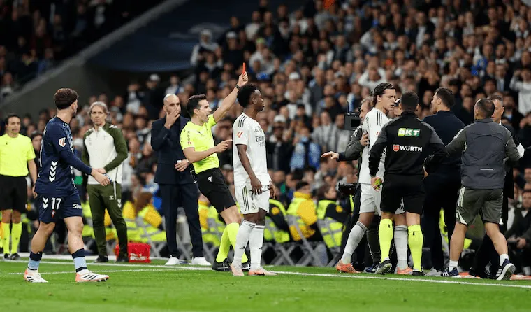 至于恩德里克:他不僅大聲抗議,還在替補(bǔ)席上被工作人員拉住。兩人都將至少停賽兩場(chǎng)。