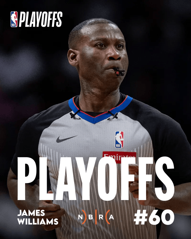 第二裁判:James Williams(吹罰西決G4,扎克東決G5)