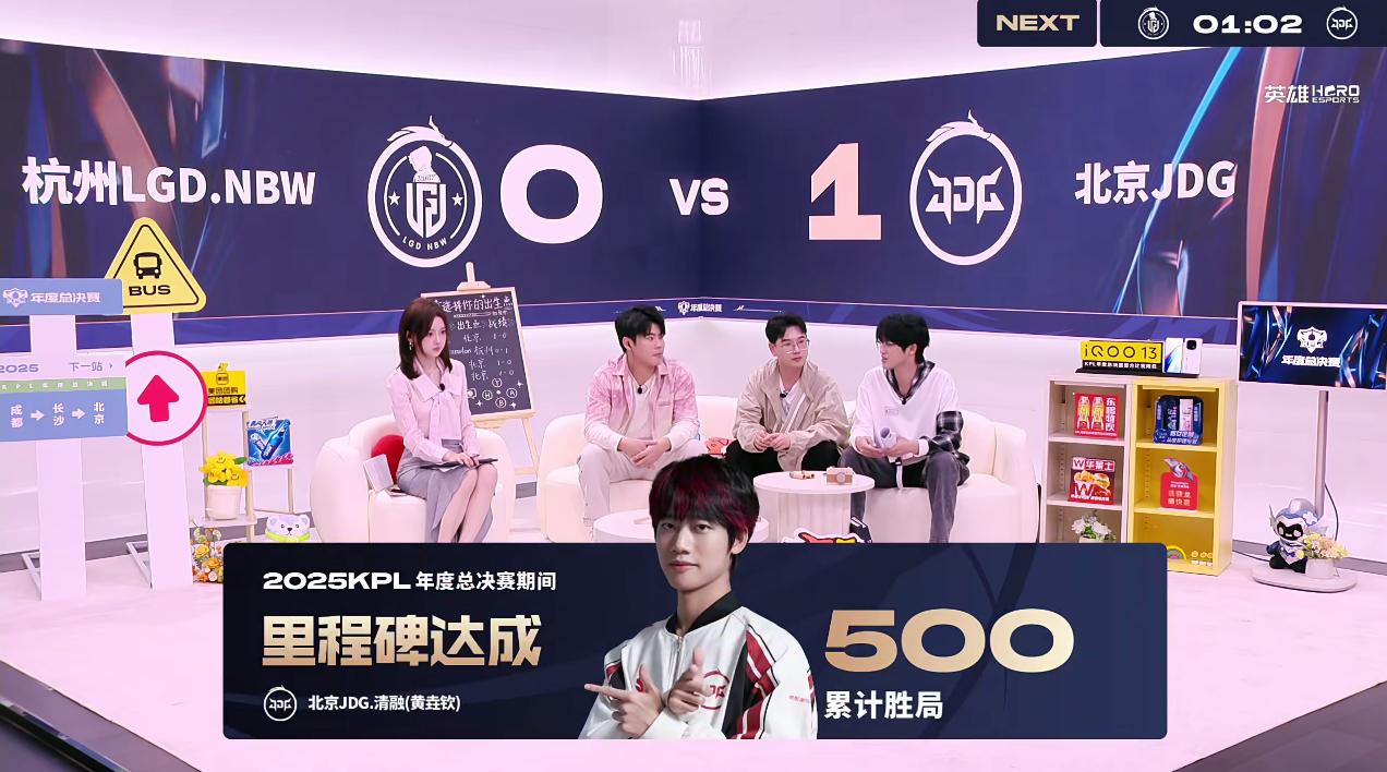 虎撲10月02日訊 2025KPL年度總決賽第4日第2場第1局比賽后,恭喜北京JDG.清融達成累計勝局500里程碑!喜北