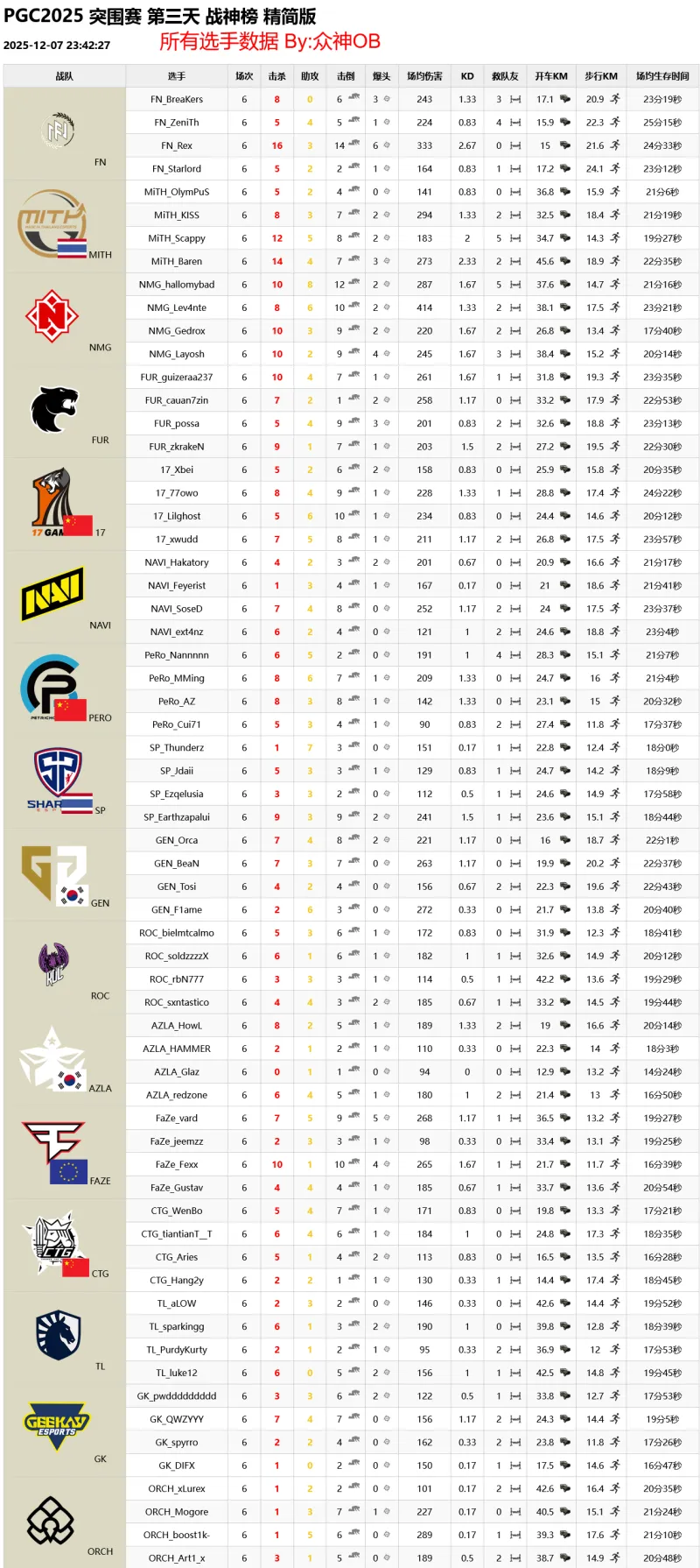 PGC2025 突圍賽 第三天 積分榜&戰(zhàn)神榜