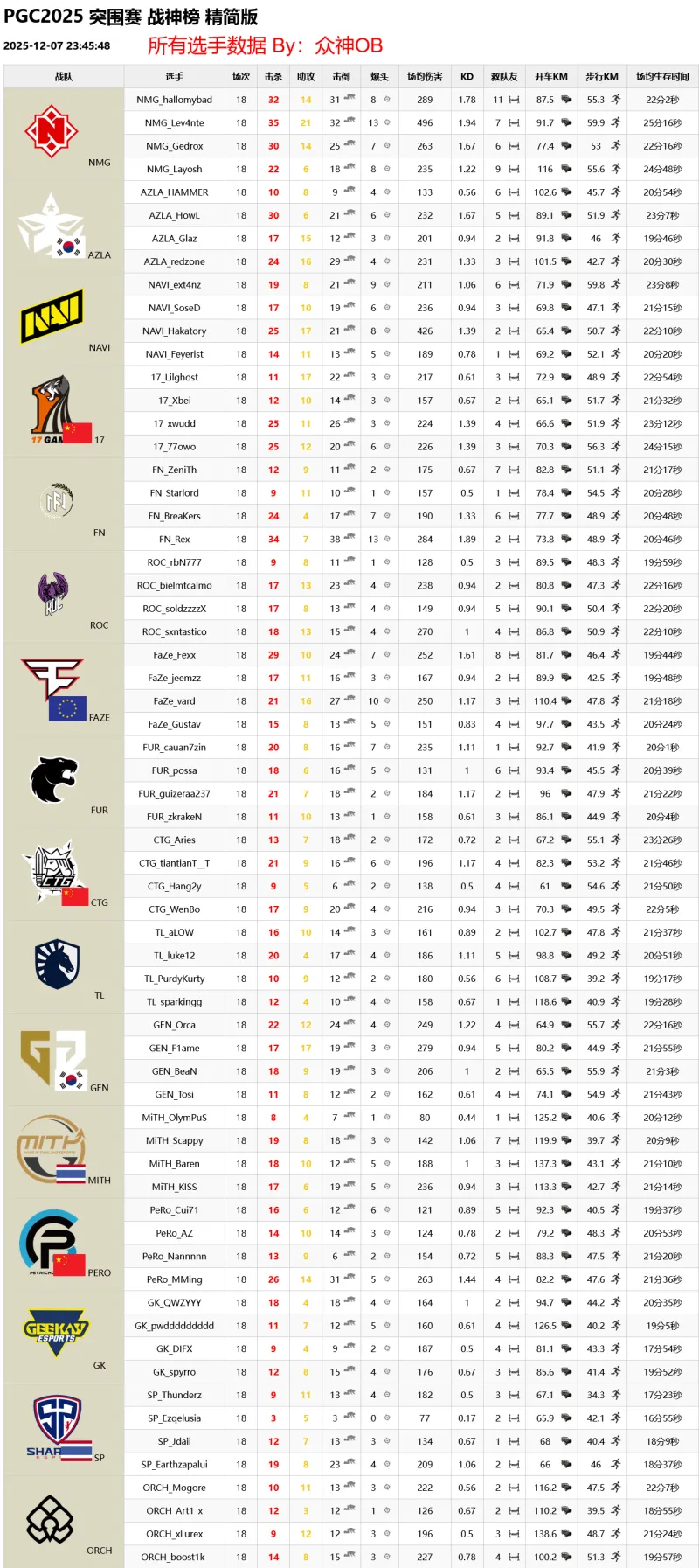 PGC2025 突圍賽 第三天 積分榜&戰(zhàn)神榜由眾神OB 發(fā)表在絕地求生 https://bbs.hupu.com/pubg