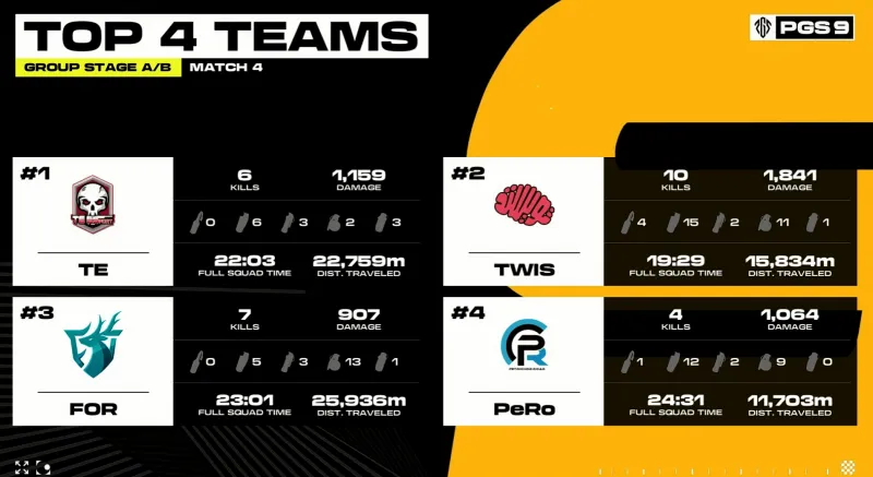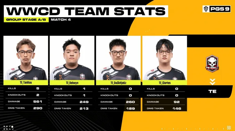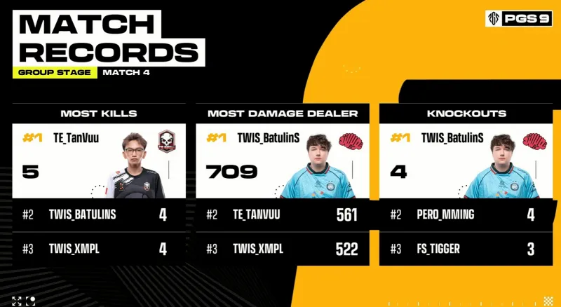 [賽后]TanVuu1穿3TWIS!PGS9小組賽D1R4:TE吃雞,單局6淘汰