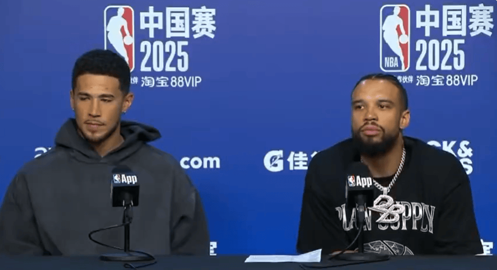 虎撲10月13日訊 在昨日中國賽季前賽第二場結(jié)束之后,太陽球員德文-布克和狄龍-布魯克斯一同接受了記者采訪。大概打算
