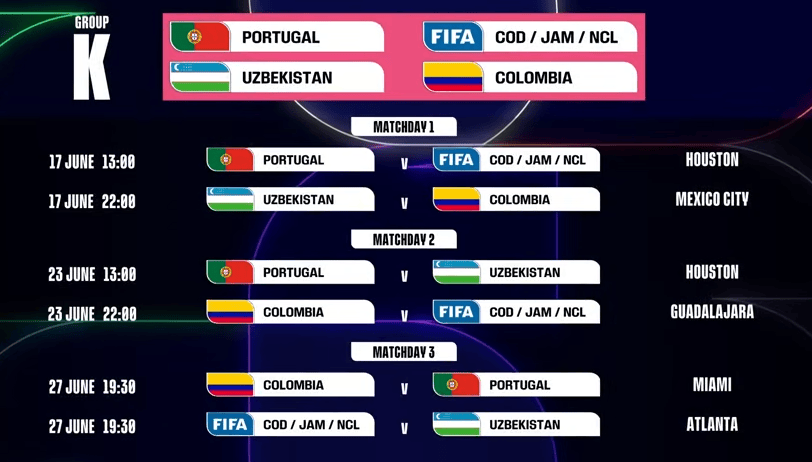 [流言板]美加墨世界杯K組賽程:葡萄牙末輪早晨7:30對(duì)陣哥倫比亞