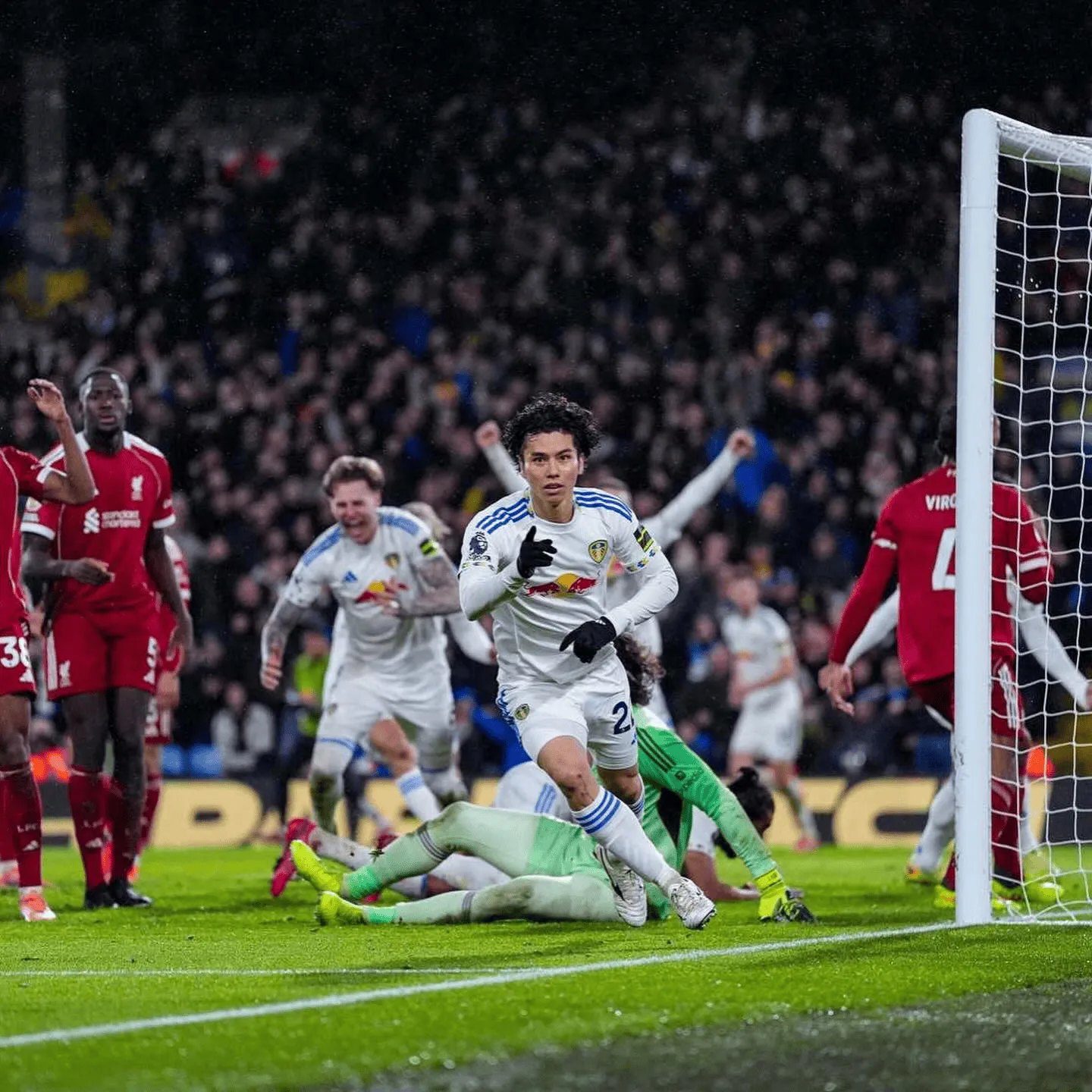 虎撲12月08日訊 英超第15輪,利茲聯(lián)主場(chǎng)3-3戰(zhàn)平利物浦,中碧田中碧在比賽傷停補(bǔ)時(shí)階段攻入絕平進(jìn)球。社媒