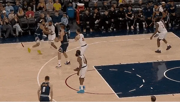 比賽的近發(fā)角分第一節(jié),約基奇弧頂附近發(fā)牌,牌精精準(zhǔn)長傳助攻戈登底角三分命中。準(zhǔn)長