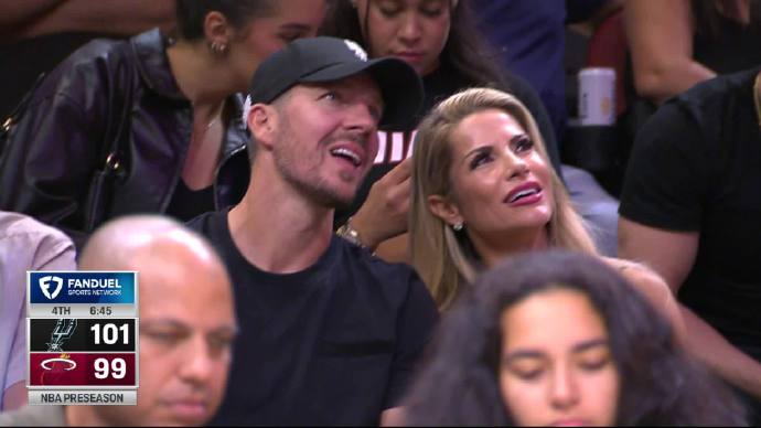 賽中,板德熱火隊(duì)社媒官方曬出來德拉季奇與妻子現(xiàn)場觀賽的奇妻瞬間。