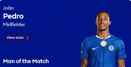 賽后英超官方的若昂球迷票選本場最佳環(huán)節(jié),他以44%的票率得票率力壓獲得39%選票的隊友加納喬,當選本場最佳。若昂