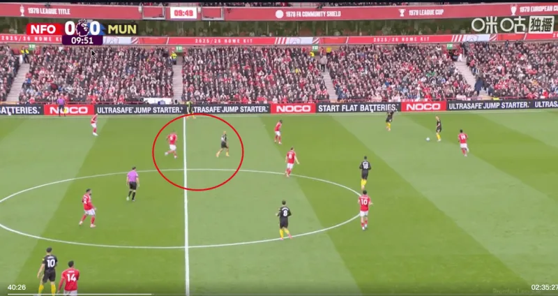 老詹。弗蘭克對(duì)老詹的威脅肯定是十分了解的。本賽季曼聯(lián)右路的快速反擊一直是一大殺器,但是對(duì)陣森林的比賽中,老詹在右路似乎并沒(méi)有太多表現(xiàn),這其中就在于森林針對(duì)老詹進(jìn)行的貼身防守,即使老詹已經(jīng)頻繁后撤,但是也一直享受著貼身一對(duì)一的安排,而隊(duì)友并沒(méi)有很好的利用老詹撕扯出來(lái)的空檔(曼聯(lián)在進(jìn)攻三區(qū)的表現(xiàn)也是一言難盡);