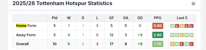 熱刺的主場(chǎng)1勝5負(fù)。主要原因就是陣地戰(zhàn)沒(méi)有什么好的攻擊手段。