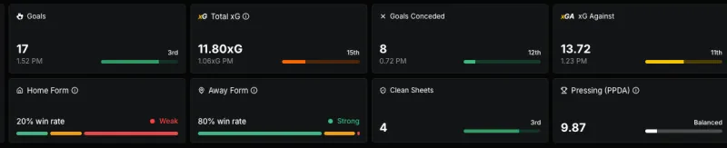 目前熱刺排名第六的,但是他的預(yù)期進(jìn)球和預(yù)期失球并沒(méi)有表現(xiàn)的那么強(qiáng)勢(shì),進(jìn)17球(xg11.8),失8球(xGA 13.72)