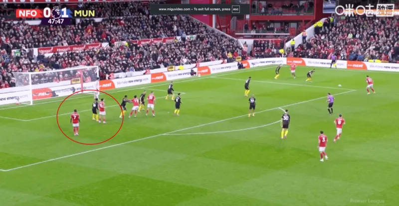 因此阿馬德,約羅和卡塞米羅組成的曼聯(lián)右路防線,需要時(shí)刻警惕烏多基的插上和傳中。同時(shí)也要小心理查利森,他可能會(huì)埋伏在后點(diǎn),利用空中優(yōu)勢(shì)對(duì)我們?cè)斐赏{。