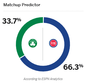 [流言板]ESPN預(yù)測(cè)明日比賽:凱爾特人勝率僅為33.7%,活塞勝率66.3%