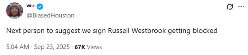 隨后,多家美媒呼吁火箭用老將底薪簽下自由球員拉塞爾-威斯布魯克。
