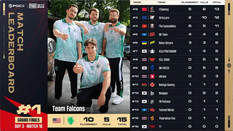 虎撲12月14日訊 PGC2025總決賽第三日第六局比賽結(jié)束,本局賽況如下。