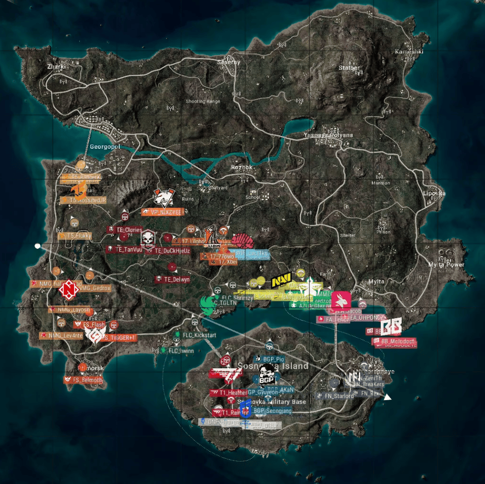 決賽圈TE對陣FLC,土作4V4,賽后兩隊率先互換一人,決賽金量隨后FLC打掉Delwyn,直邀戰(zhàn)奪3V2,最終FLC打掉TE兩人順利吃雞。