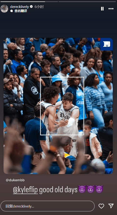 虎撲09月15日訊 今日,獨行俠球員德雷克-萊夫利二世在ins發(fā)布了兩張分別代表杜克大學(xué)與獨行俠參加比賽的照片照片,并配文:美好的板美舊時光。