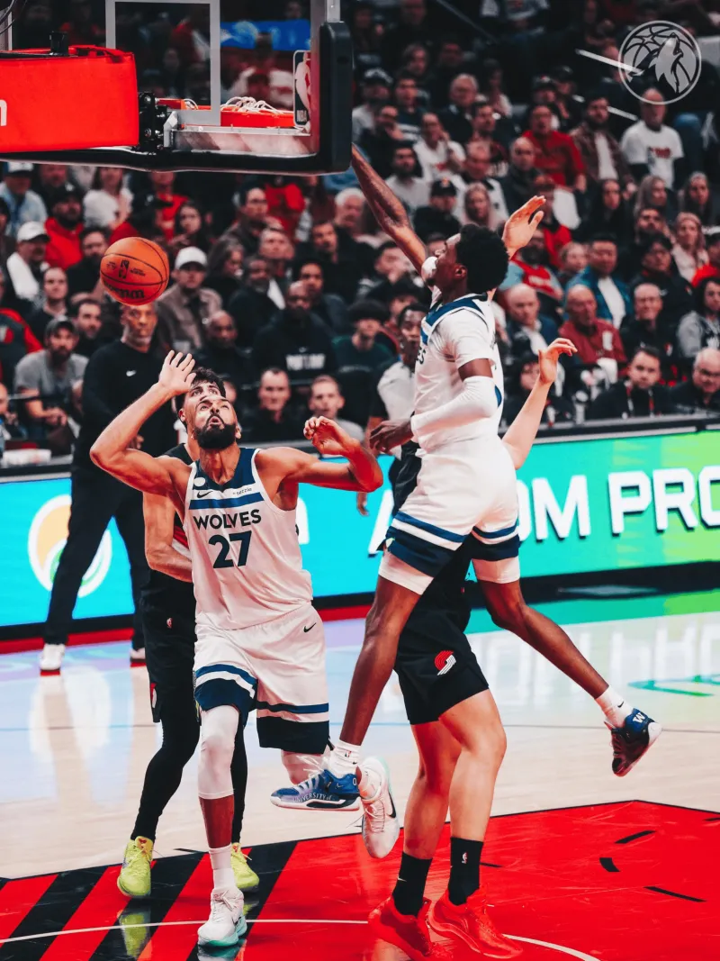虎撲10月23日訊 NBA常規(guī)賽,開(kāi)拓者對(duì)陣森林狼的回森比賽正在進(jìn)行中,開(kāi)拓者半場(chǎng)61-57領(lǐng)先森林狼。官方隔扣