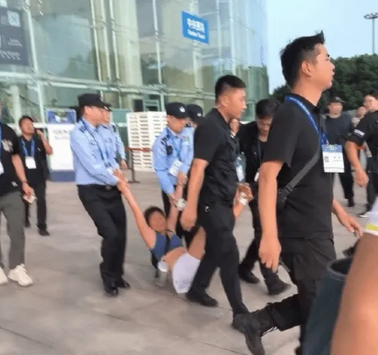 安保人員多次勸阻無效,其同行小男孩也曾嘗試制止,但謝某某態(tài)度囂張,甚至對安保人員作出挑釁動作。民警反復(fù)警告無果后,依法將其強制帶離現(xiàn)場,同行男孩被一并抱離。