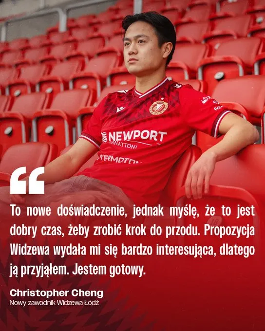 虎撲12月10日訊 波蘭超球隊(duì)羅茲維澤夫(Widzew Lodz)官方宣布,24歲的挪威籍華裔球員鄭澤彥(Christopher Cheng)正式加盟,雙方簽約至2029年。該球隊(duì)目前位列波蘭超第13位,