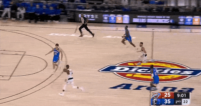 虎撲10月07日訊 NBA季前賽,雷霆對(duì)陣獨(dú)行俠的滑翔比賽正在進(jìn)行中。