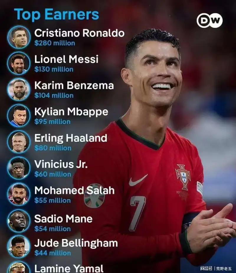 據(jù)2025年10月份福布斯發(fā)布的現(xiàn)役球員收入榜來看,姆巴佩年收入9500萬美元,其中年薪7000萬,場外代言收入2500萬;維尼休斯的年收入是6000萬美元,其中年薪是4000萬,場下代言是2000萬。