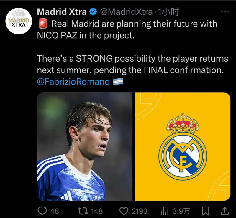 羅馬諾:皇家馬德里正將尼科·帕斯納入未來計(jì)劃。明年夏天球員極有可能回歸,只待最終確認(rèn)。