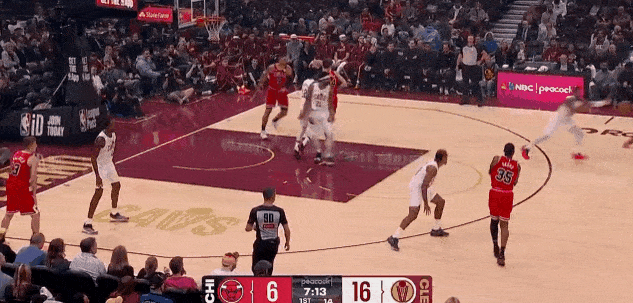 第一節(jié)比賽,切爾搶斷米切爾眼疾手快搶斷對手上籃再打進,眼疾騎士開場18-6領(lǐng)先公牛。手快上籃士開