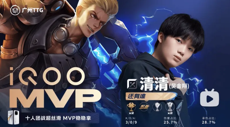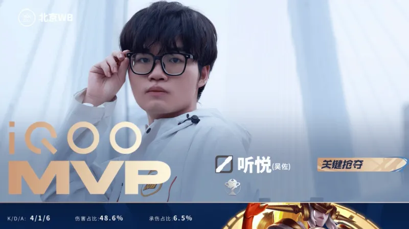 對陣杭州LGD.NBW的比賽,清清4局比賽3拿MVP。