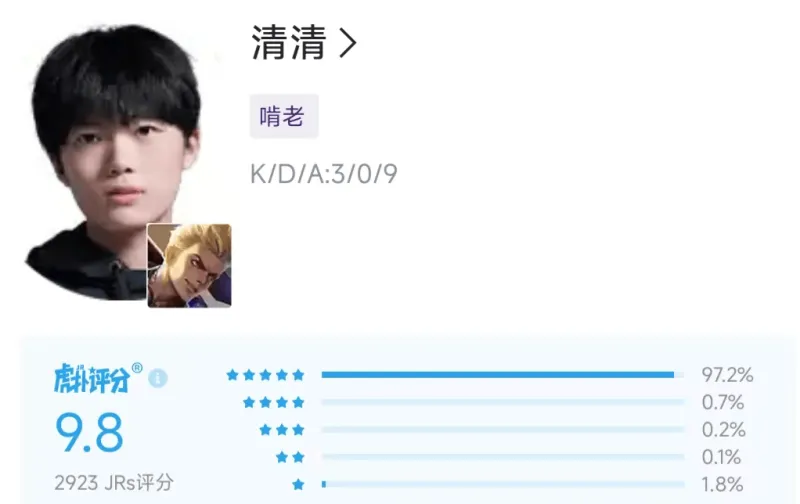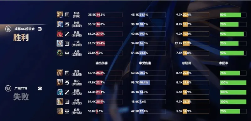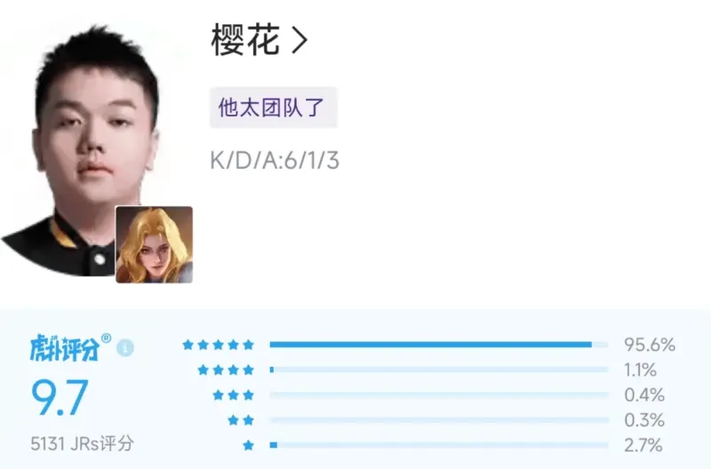 3-0-9的不死戰(zhàn)績,25.7%的輸出占比+28.7%的承傷占比,相當(dāng)豪華的數(shù)據(jù)。