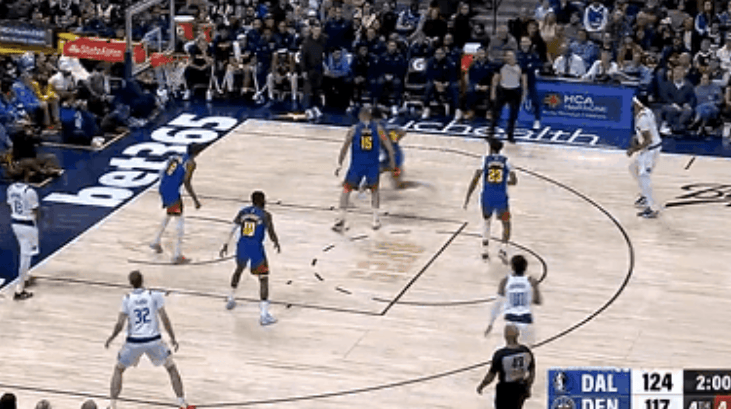 NBA常規(guī)賽,獨行俠對陣掘金的砍下比賽正在進行中。