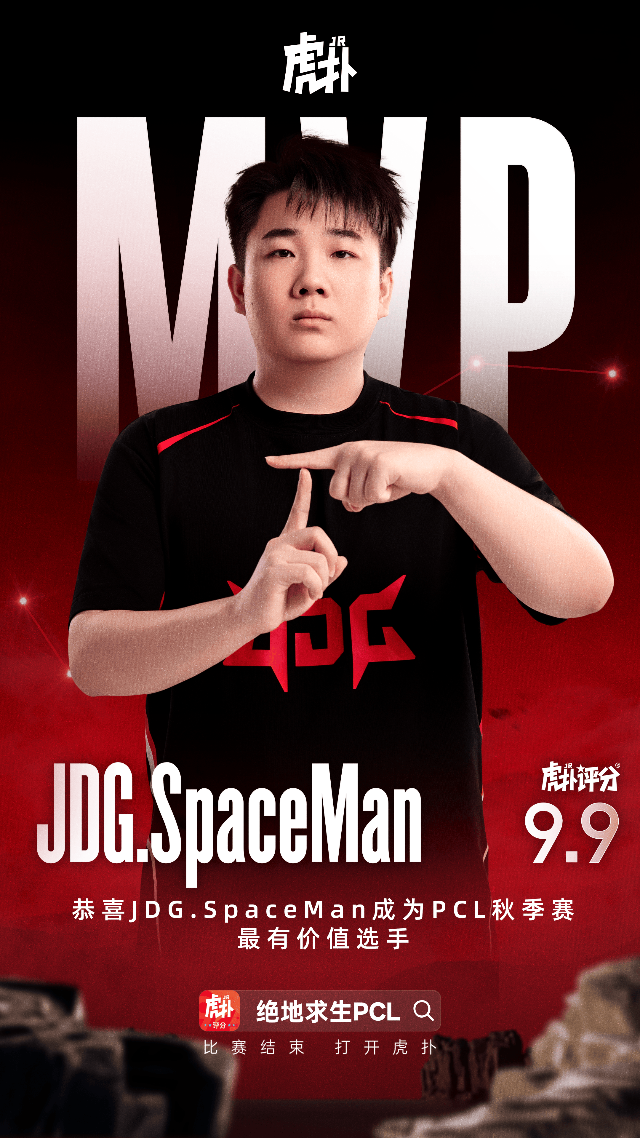 虎撲09月28日訊 2025PCL秋季賽結(jié)束,冠軍戰(zhàn)隊JDG選手Spaceman獲得本屆賽事MVP。雞群
