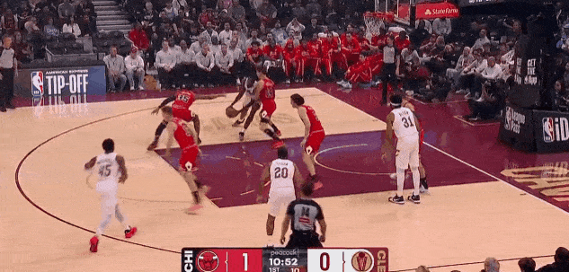 第一節(jié)比賽,開場莫布利禁區(qū)持球單打穩(wěn)穩(wěn)勾手命中,首分幫助騎士取得開場首分。板莫布利幫助