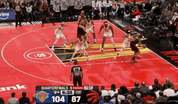NBA杯淘汰賽,尼克斯對(duì)陣猛龍的招牌比賽正在進(jìn)行中。