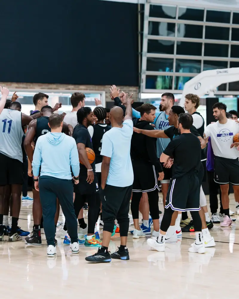 [流言板]天賦大隊(duì)!爵士官方曬訓(xùn)練照:用一點(diǎn)樂趣來(lái)平衡工作