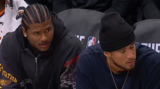 比賽第三節(jié),回歸太陽本場首次被森林狼反超,太陽鏡頭給到杰倫-格林和布克。首次