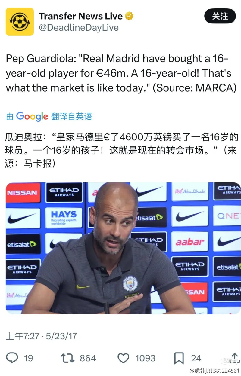 歲月史書(shū),老瓜當(dāng)年對(duì)皇馬簽約維尼的評(píng)價(jià)