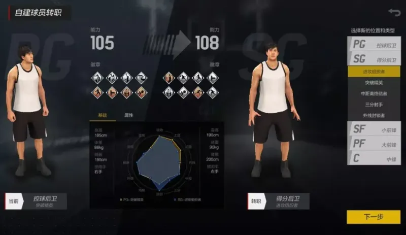 2018年9月27日,街頭2V2模式正式上線,時(shí)至今日也是游戲里最重要的模式之一,新增東契奇/艾頓/巴格利等新秀球員,仍然清晰的記得彼時(shí)的班巴真是一卡難求,另外相信很多玩家都不會(huì)想到巴格利時(shí)隔多年后已經(jīng)淪為了墊子卡球員,更不會(huì)想到看似平平無奇的快船隊(duì)新秀,如今已經(jīng)成為MVP級(jí)別的巨星;對(duì)于自建轉(zhuǎn)職頁面進(jìn)行更新,增加了新舊位置屬性對(duì)比。