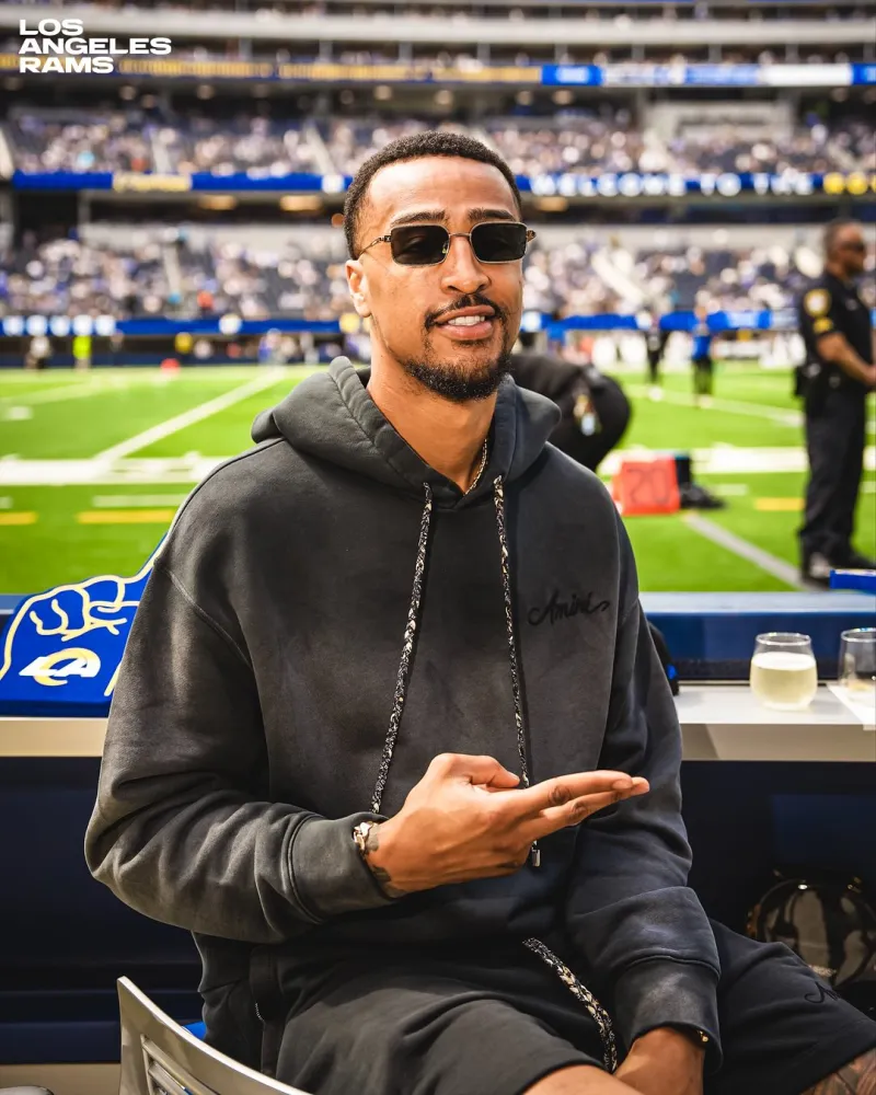 虎撲09月29日訊 洛杉磯公羊官方更新Ins,曬出一組快船球員伊維察-祖巴茨和約翰-科林斯到場助威的科林看橄照片與球迷分享。